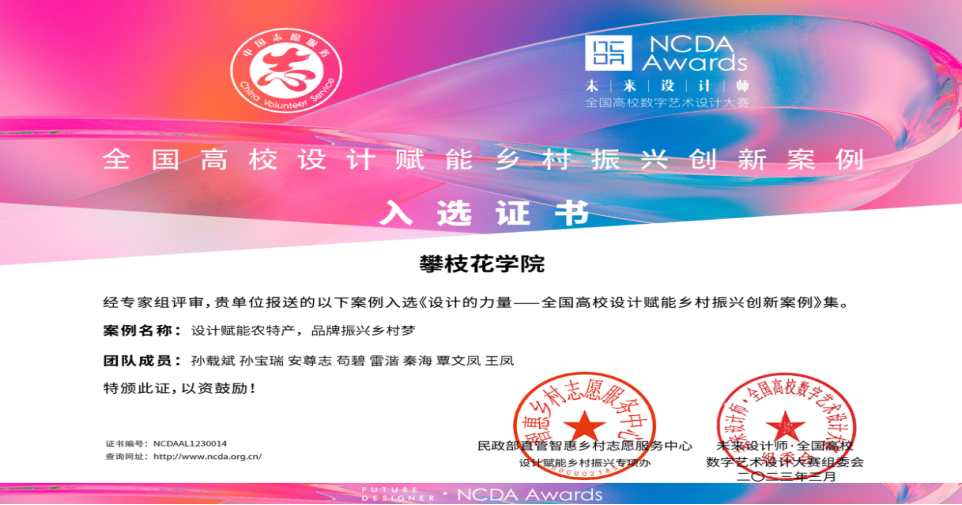 | 全国高校赋能乡村振兴创新案例入选证书 |