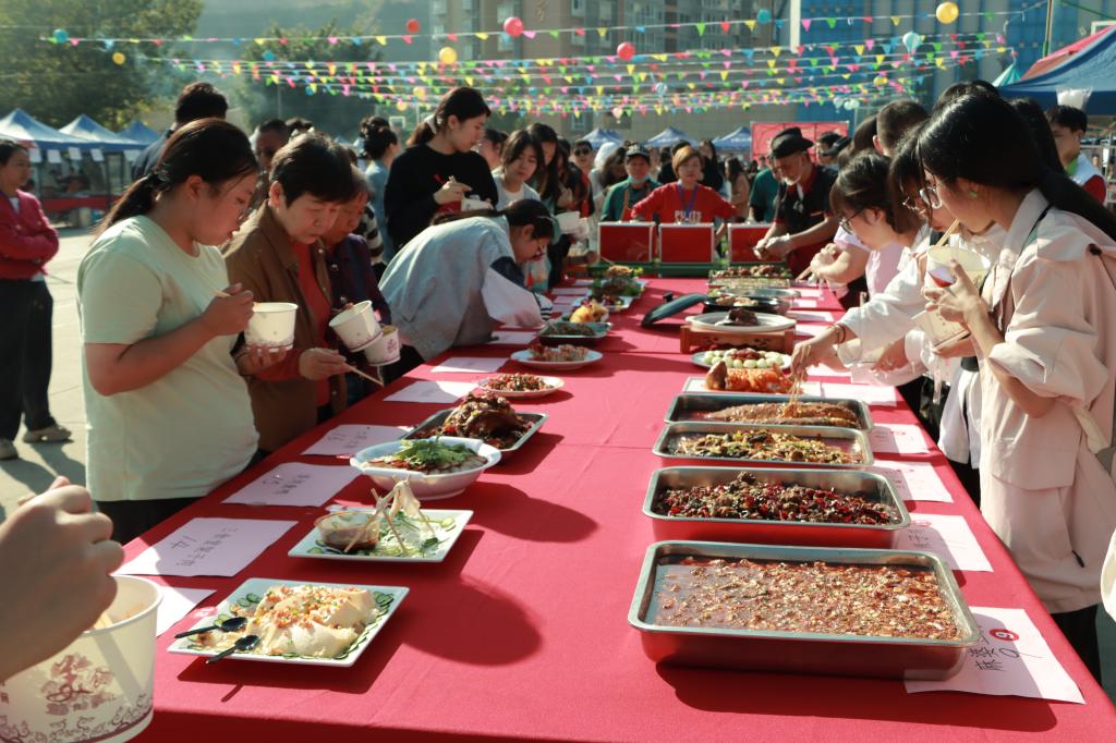 美食文化节以“四秩芳华 ‘味’来可期”为主题,开展了“同生同庆,感恩有你”集体生日会、雕刻表演、包饺子PK赛、美食大联展等形式多样的活动。4米大蛋糕,学校与学生同生同庆,热闹温馨,各食堂推出的特色美食,色香味俱全,让人回味无穷。