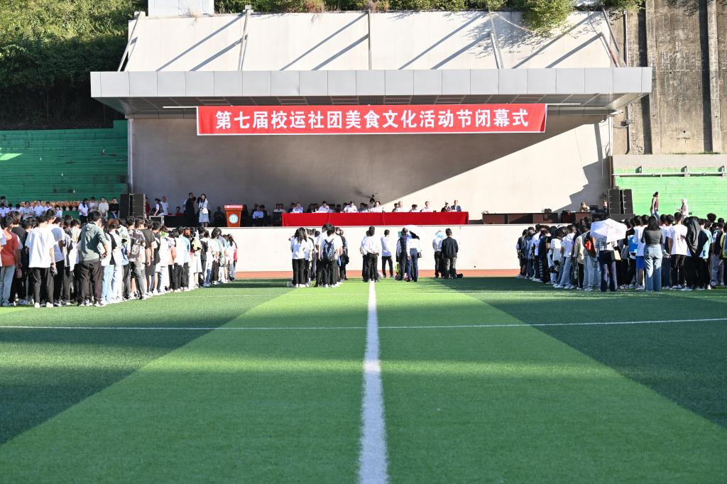 11月13日下午,我校第七届校运社团美食文化节闭幕式在南苑田径运动场举行。党委副书记、校长王曙光,党委副书记、纪委书记彭徐,党委副书记刘立新,副校长朱波强、石维富、王兵、张旭辉出席闭幕式。学校各单位负责人、各二级学院党政主要负责人、分管学生工作领导、校友代表、师生代表参加闭幕式。闭幕式由石维富主持。