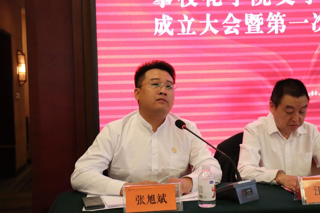 文学专业校友分会会长张旭斌致感谢词,并表示作为校友分会首届会长将竭尽全力,履职尽责,为文学院校友做好服务工作,把文学专业校友分会建设成一流校友分会。