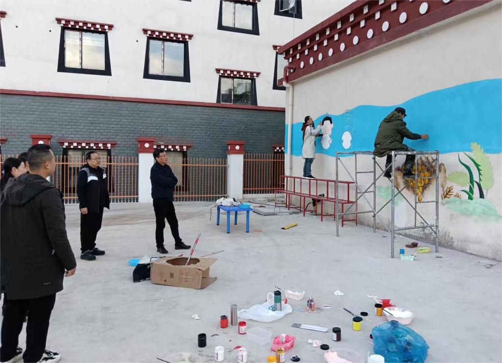在乡城县第二幼儿园,刘立新现场查看了墙绘的工作开展情况,并慰问了开展墙绘工作的艺术学院干部教师,强调要紧密结合乡城县幼儿教育的特点、民族特色,充分发挥学校艺术学院教师的才智,绘好幼儿园及相关学校的墙绘,助力营造优美的校园环境,进一步铸牢中华民族共同体意识,促进幼儿、学生身心健康发展。
