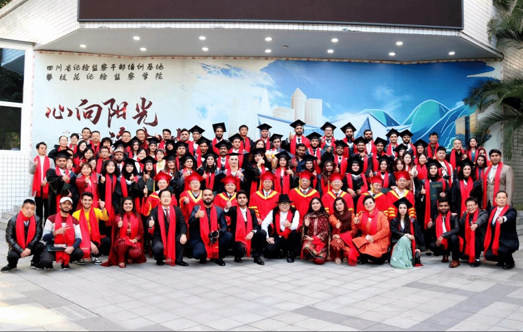 毕业学生李小龙代表2017级全体同学表达了对母校培养的感激之情,他从回忆2017年初来攀大时稍有畏惧的感受开始,讲诉了过去6年的学习和生活中的收获,收获了来自学校每一位领导、老师和同学的关心和帮助,攀大是留学生们心中的第二故乡。