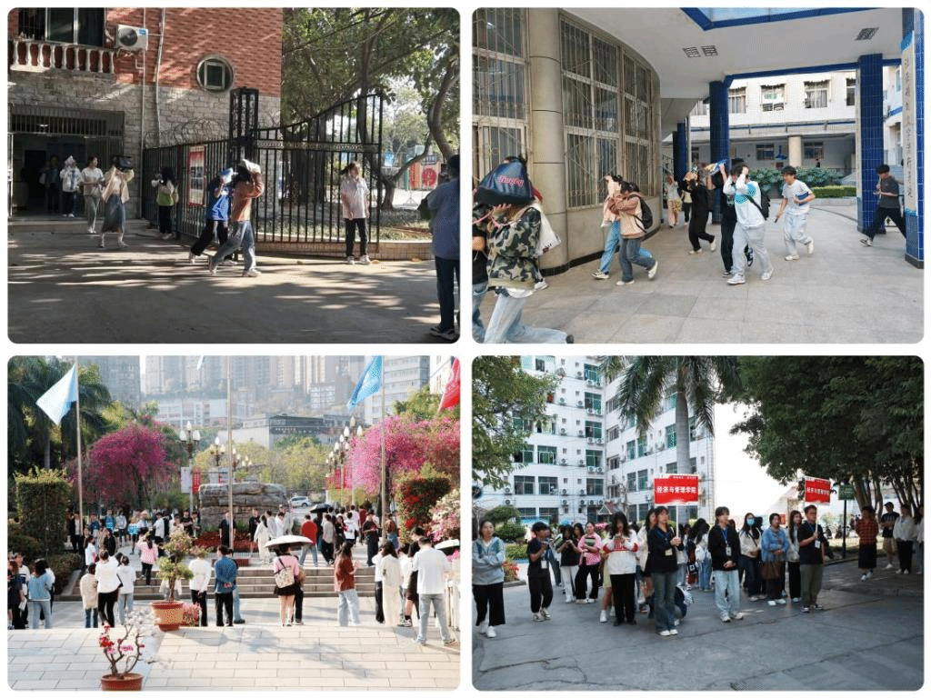 为建立完善学校地震预警信息发布机制,有效发挥地震预警平台的作用,确保发生灾难时能保障师生生命和财产安全,学校于3 月 14日上午组织全体师生开展教学区和公寓区防震应急演练,副校长王兵亲临现场进行督查和指导。