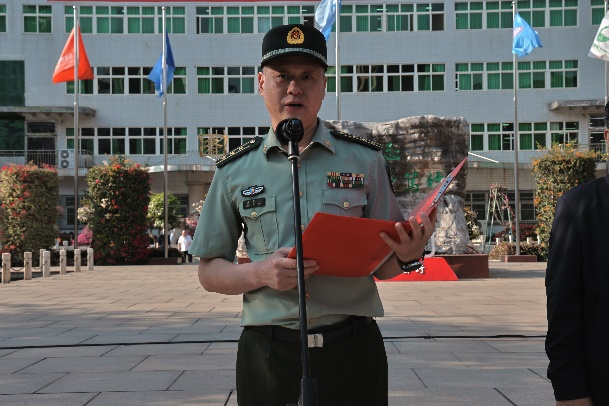 王兵向即将踏上新征程的新兵们表示热烈的祝贺并高度赞扬了这14名青年携笔从戎,投身军营的光荣选择。他们参军入伍、报效祖国,是攀大的标兵,是学子的榜样。希望同学们坚定信念、牢记使命、甘于奉献,做忠于党、国家和人民的战士;苦练本领、淬炼意志、持续学习,做本领硬、意志坚、业务精的国家卫士;注重团结、建立功业,为校争光,蜕变为有灵魂、有本事、有品德、有血性的优秀士兵。
