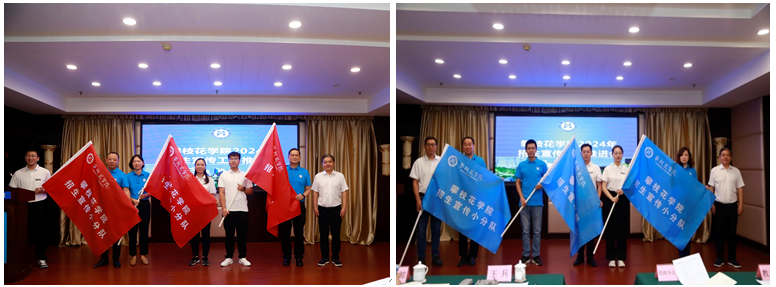 会后,王兵为6支招生宣传队伍授旗并合影留念。招就处对全体讲师团成员进行了招生宣传工作专题培训。