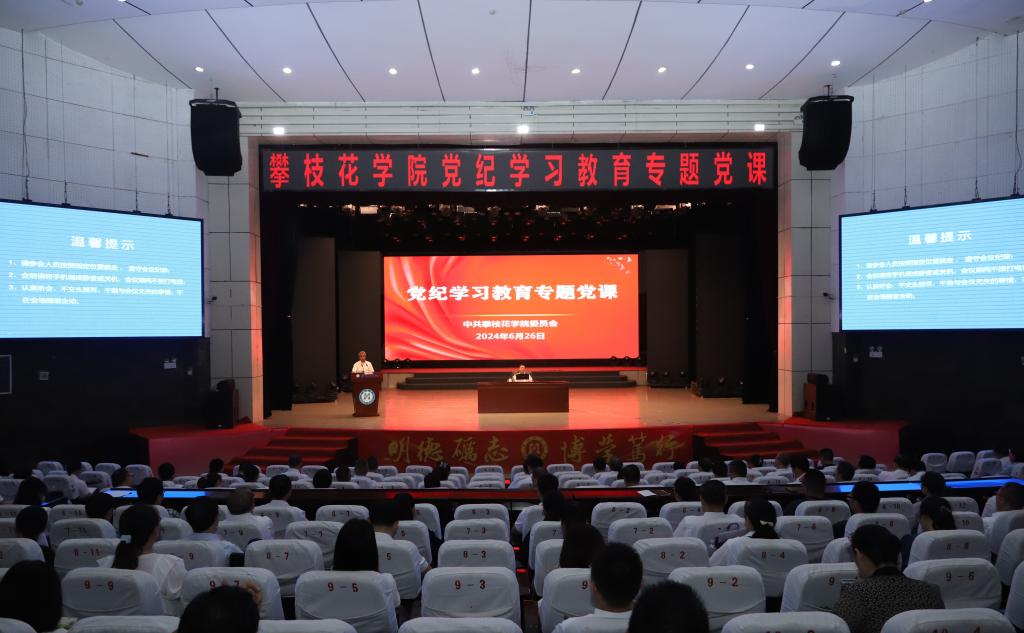 6月26日下午,党委书记胥刚以《强化纪律意识 增强履职本领 加快推进学校事业高质量发展》为题,为全校党员干部讲授纪律教育专题党课。全校副县以上党员领导干部、各基层党支部书记,文学院、马克思主义学院、附属医院教师党员参加党课学习,副县以上非党员领导干部列席。