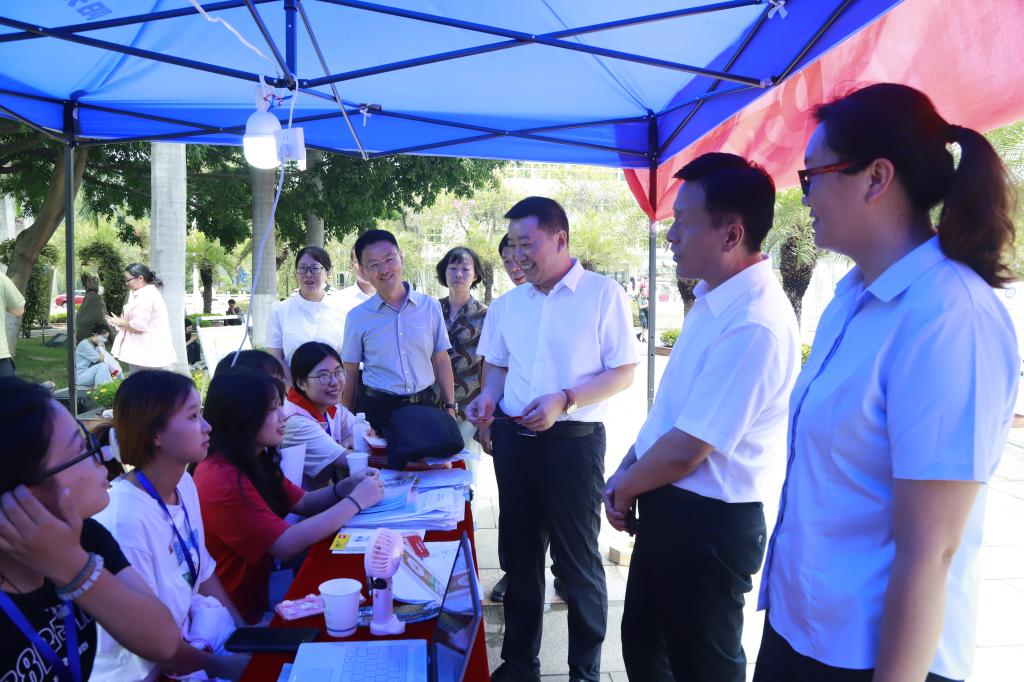 迎新期间,校党委书记胥刚,党委副书记、校长王曙光,党委常委、副校长朱云生等校领导,带队亲临迎新现场,深入了解新生报到和迎新各项工作开展情况,对新生与家长的到来表示热烈欢迎,对迎新工作人员和志愿者的辛勤付出表示肯定,并嘱咐他们要耐心、细致地做好迎新服务工作,给新生和家长较为舒适的入学体验。
