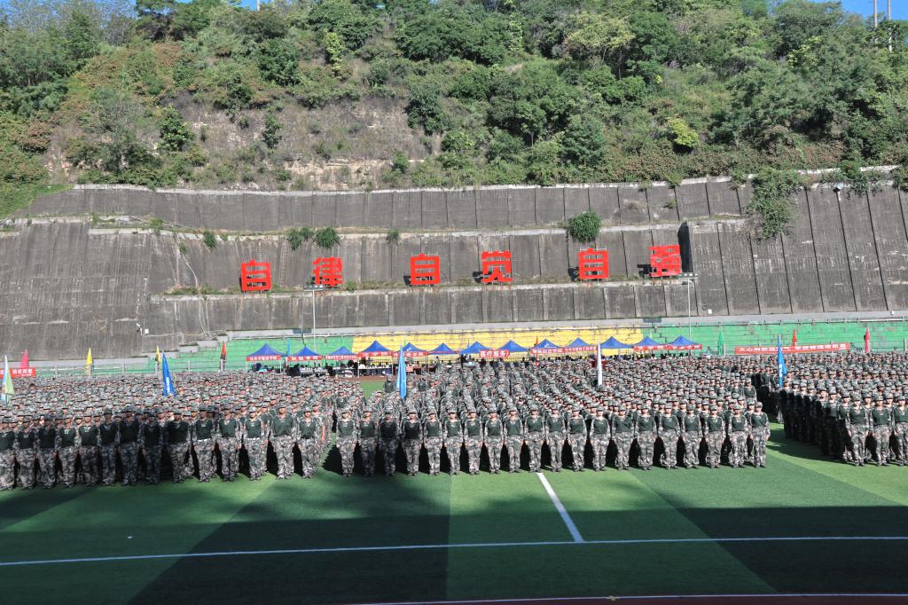 9月23日上午,我校2024级新生军训汇报大会在南苑运动场隆重举行。校党委书记胥刚,副校长张旭辉、朱云生,东区人武部副部长杨琪出席大会。学校党政办、宣传部、教务处、武装部、保卫处、后管处、体育部、团委负责人,各学院党组织书记、分管学生工作领导、学生科长、新生辅导员,学生教官、2024级全体新生参加大会。