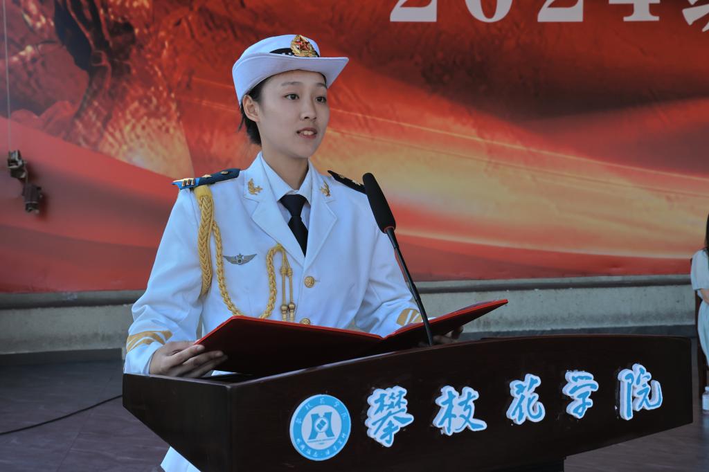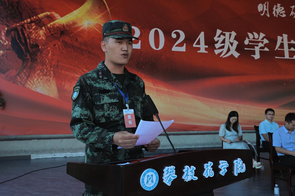 来自医学院2024级的优秀学员方鳞代表参训新生分享了自己的军训感受和收获。她表示,军训不仅让大家强健了体魄、磨炼了意志,还让大家了解了中国军人的日常,体会到了国防教育的意义。未来会把军训期间养成的良好习惯和优良作风带到学习和生活中,以崭新的姿态尽快适应大学的新生活,做阳光健康美丽攀大人。
