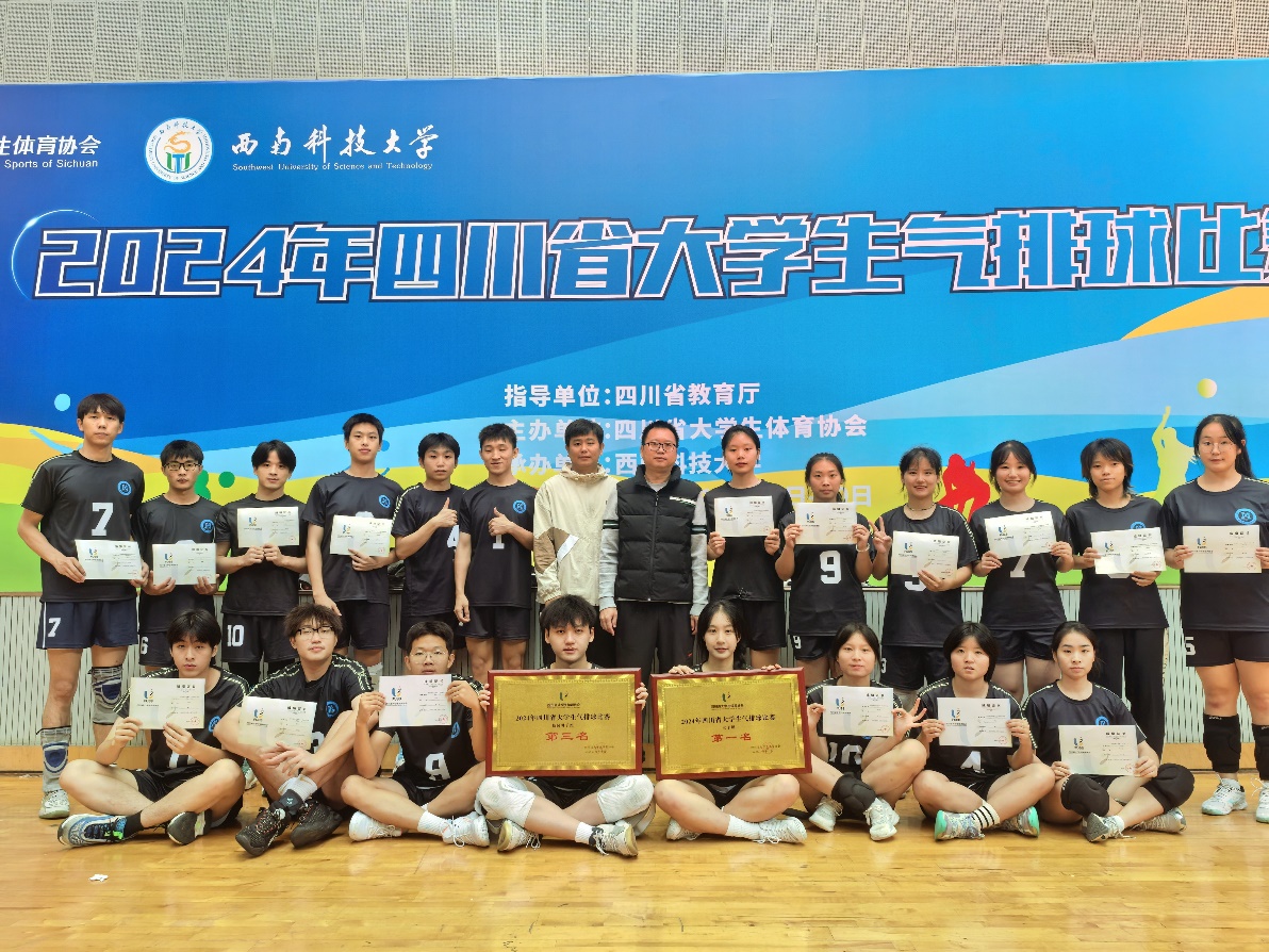 10月18日至20日,由四川省教育厅指导、四川省大学生体育协会主办,西南科技大学承办的2024年四川省大学生气排球比赛在西南科技大学体育馆举行,来自省内20余所高校、200余名运动员参加本次比赛。经过激烈的角逐,我校女子代表队以全胜的战绩再次斩获校园女子组冠军,实现卫冕,男子代表队荣获校园男子组季军,这是我校继去年在该项赛事勇夺双桂冠后,再次取得佳绩。