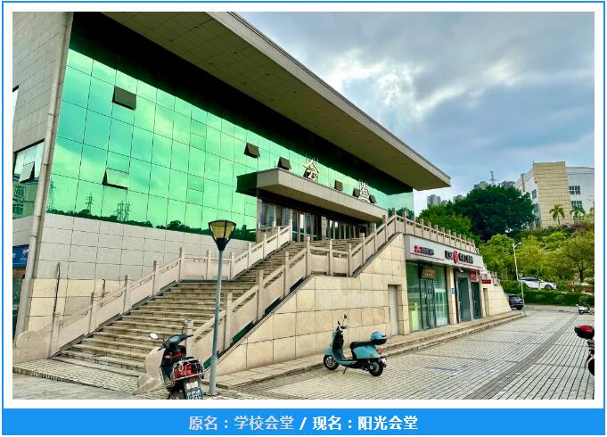 说明:阳光会堂位置临近阳光广场,并取“阳光健康美丽”校园文化内涵。
