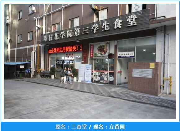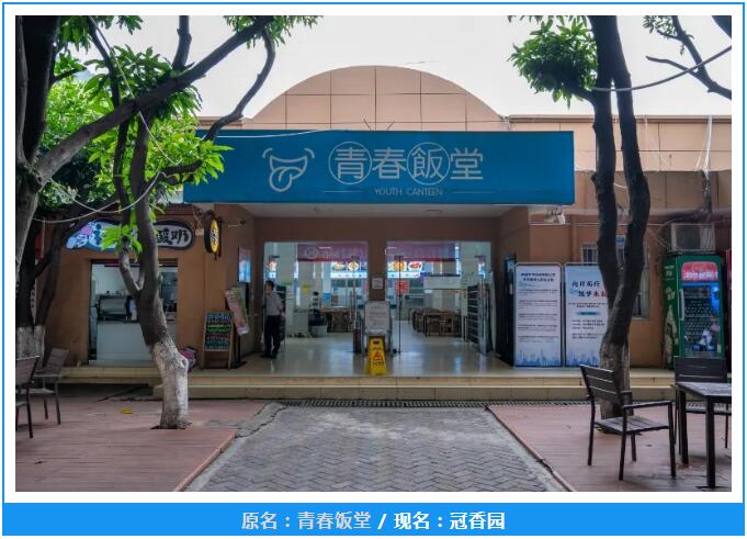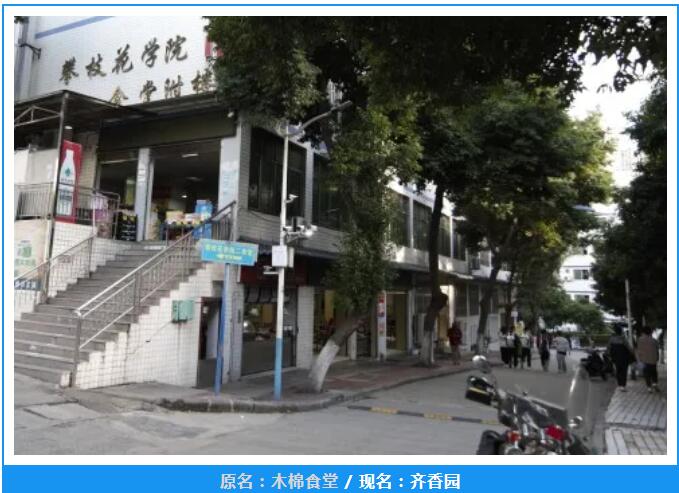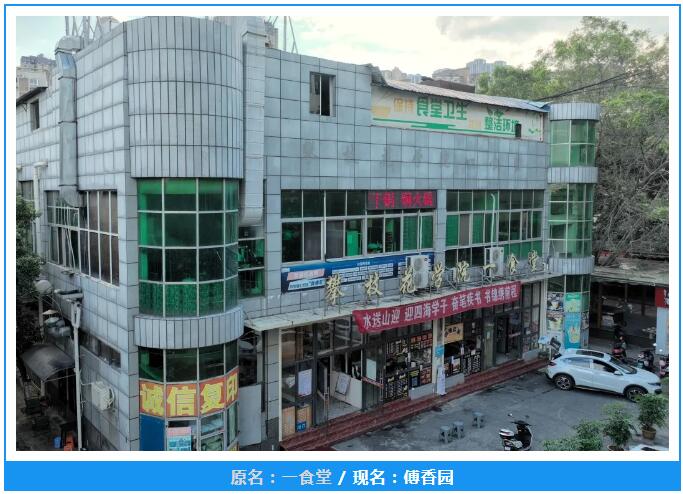 食堂更名均以“香”字贯之,饭菜不只是果腹,更是让师生能够享受美食带来的快乐;一、二、三食堂分别根据其建设时间,对应学校发展历史取“外傅之年”“豆蔻之年”“弱冠之年”“而立之年”;木棉食堂原为二食堂副楼,故取“齐”字,民族食堂以“和”字取民族融合之意。