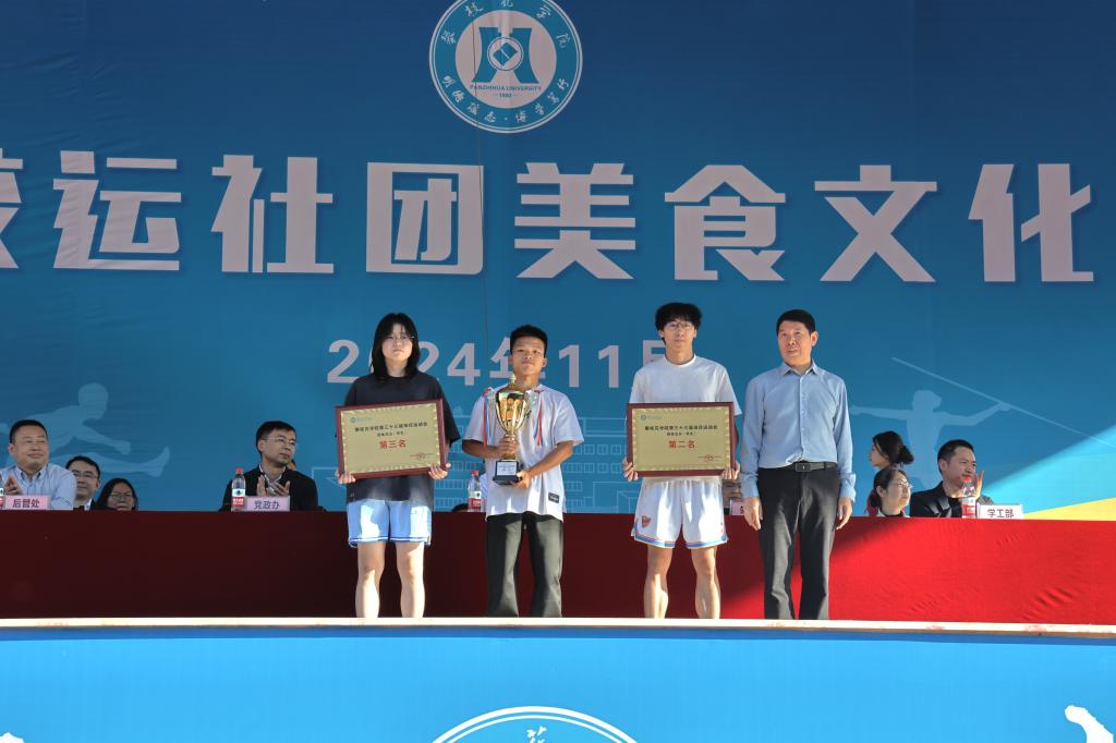 此次运动会,钒钛学院、数计学院、康养学院分别获得教工组前三名;土建学院、智造学院、基础医学院分别获得学生组团体总分前三名,教工组生化学院、土建学院、基础医学院、电气学院与学生组康养学院、智造学院、土建学院、外国语学院分别获得了体育道德风尚奖。与会领导为获奖单位颁发了奖牌、奖杯。