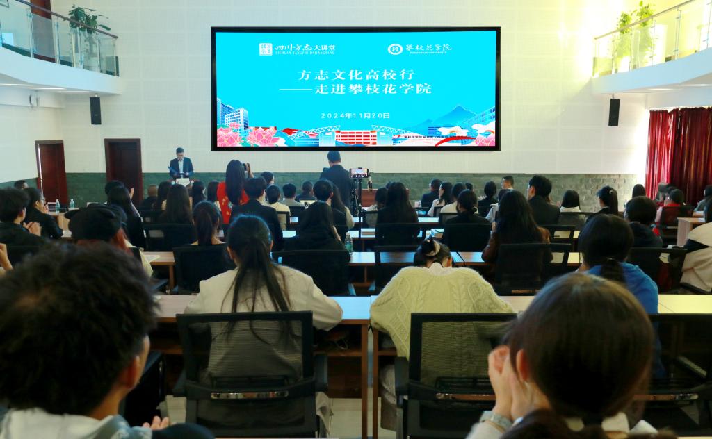 省地方志办省情信息工作相关负责人,攀枝花市、区(县)地方志相关负责人,学校宣传部、招就处、马克思主义学院、教务处、团委相关负责人参加活动,经管学院、文学院、法学院、艺术学院、外国语学院、青马班和方毅红班学生代表200余人现场听取讲座。1100余名社会公众和全省地方志系统1000余人通过“方志四川”视频号在线收看。