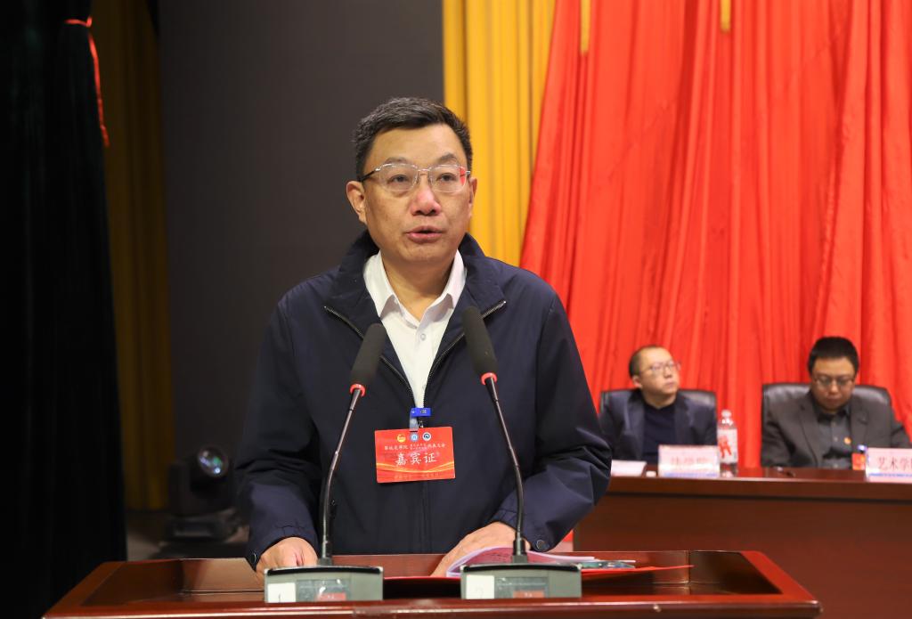 刘立新代表学校党委向大会的召开表示热烈祝贺。他指出,自第八次学生代表大会召开以来,学生会紧扣中心工作,紧跟改革步伐,紧贴学生实际,为构建阳光健康美丽校园贡献了力量。他表示,成立研究生会,召开研究生代表大会,是学校研究生学生工作的新起点。他指出,学生会(研究生会)要坚持正确导向,引导广大同学坚定理想信念,发挥好表率作用,树立起良好形象;要始终服务同学,帮助广大同学解决实际问题,从同学中来、到同学中去;要强化自身建设,成为广大同学坚实的组织依靠,苦练内功、完善自身,优化组织模式、完善治理结构。
