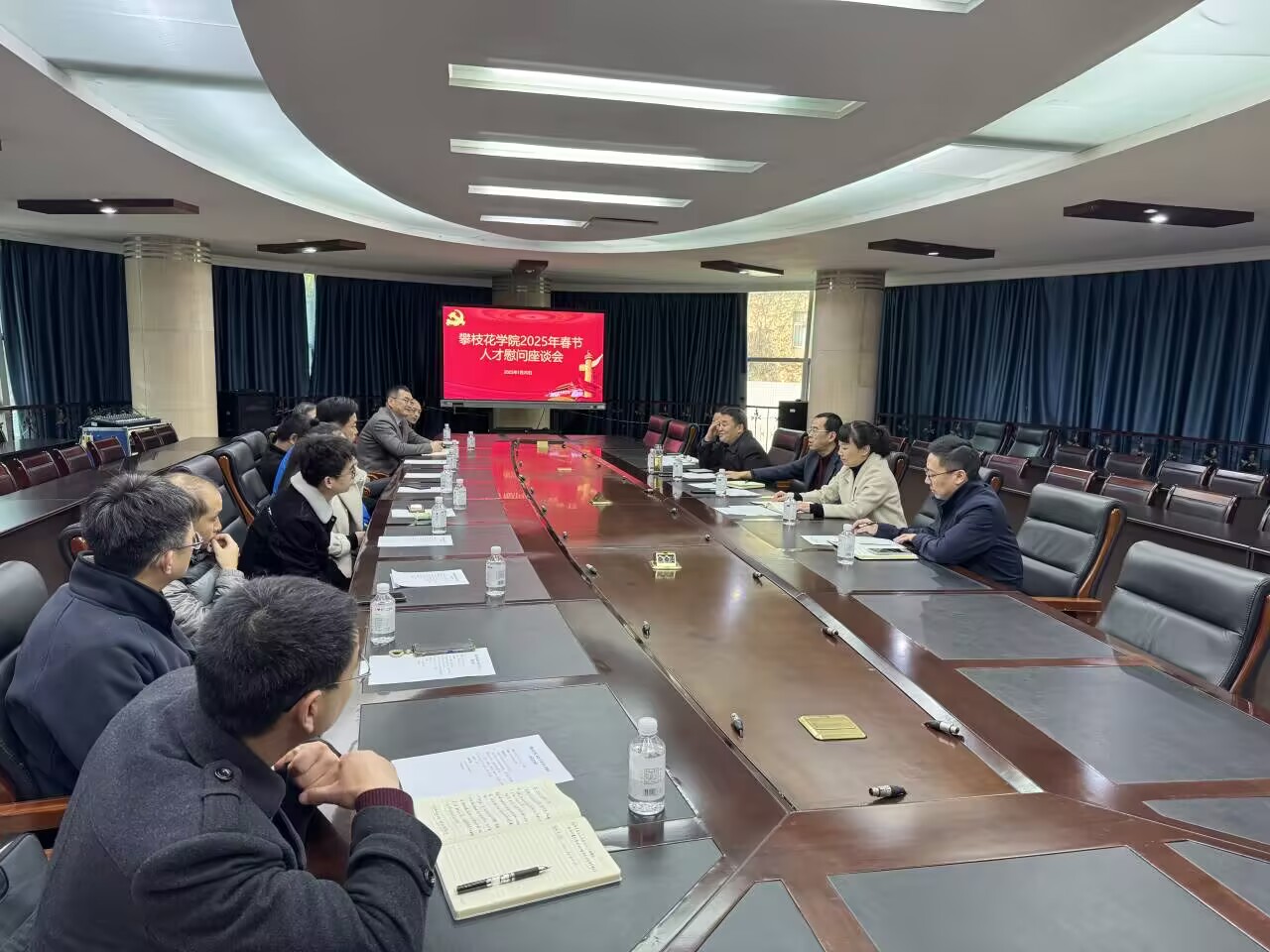 张旭辉认真听取人才代表们的发言,并就学校相关人才政策及人才个人工作、生活面临的困难进行了答疑解惑。他代表学校党委、行政充分肯定了全校人才近一年来的工作实绩,对人才代表进行了慰问。同时指出,学校事业的发展依靠人才,希望全校人才弘扬教育家精神,做好育人工作,锚定学校发展目标,努力获得更加突出的业绩;学校一直在为提高每位教师的获得感、幸福感努力工作,创造条件,保障待遇;希望大家一起同向同行,为建设阳光健康美丽攀大共同奋斗。