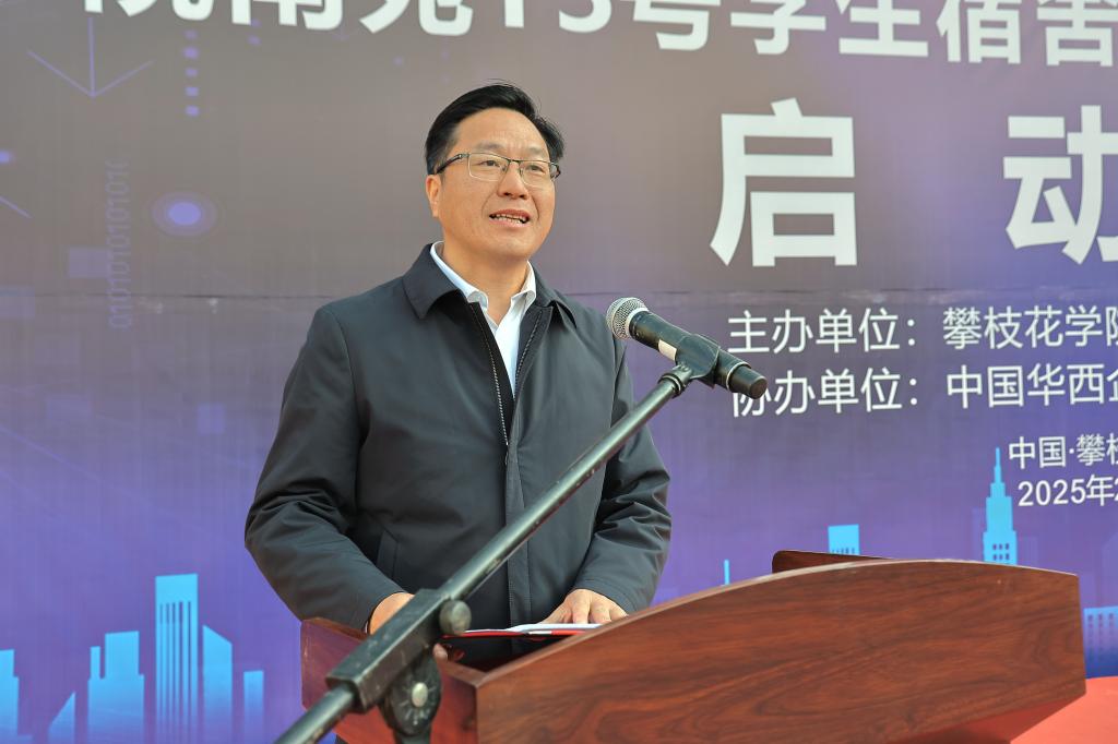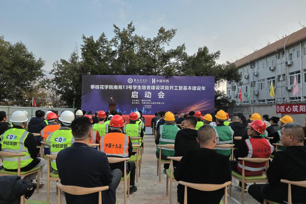 2月19日上午,我校公园校区13号学生宿舍(木硕楼)建设项目开工暨基本建设年启动会在项目施工现场隆重举行。学校党委副书记、校长李兴贵,副校长朱云生,项目承接单位中国华西企业股份有限公司第十二建筑工程公司总工程师段俊、四分公司副总经理霍龙飞,十九冶集团攀枝花管理中心主任李国庆出席会议。会议由副校长朱波强主持。