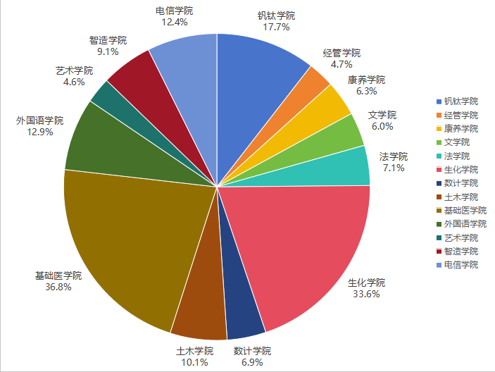 其中,医学院录取人数 85人,录取率达36.8%,位居全校第一;生物与化学工程学院录取人数 101人,录取率为33.6%,录取人数全校第一。