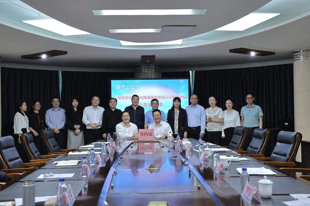西昌民族幼专党政办公室、组织人事处、教务处、科技与合作交流处相关负责人,学校党政办公室、党委组织部、科研处、产教融合发展部、教务处相关负责人参加仪式。