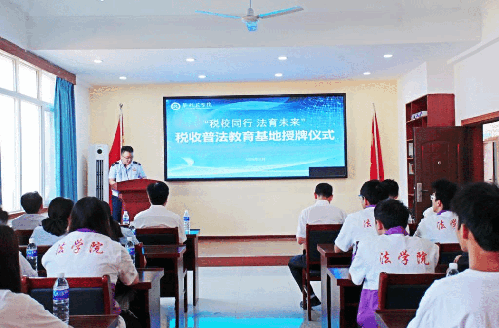 会上,双方签订了《税收普法教育基地合作备忘录》,明确将在普法教育、人才培养、社会实践等领域展开深度合作。刘明向学校授牌,标志着税收普法教育基地正式落地。