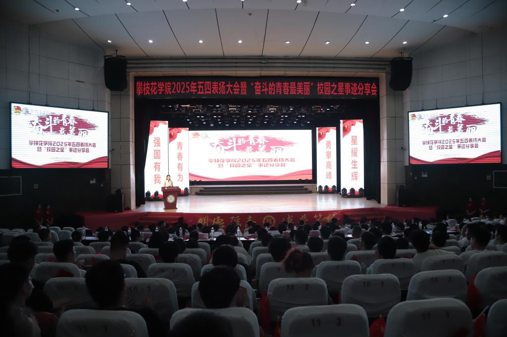 4月29日下午,我校2025年五四表扬大会暨“奋斗的青春最美丽”校园之星事迹分享会在阳光会堂举行。党委常委、副校长朱云生,相关职能部门负责人,各二级学院分管学生工作领导、分团委书记及师生代表共计800余人参会。