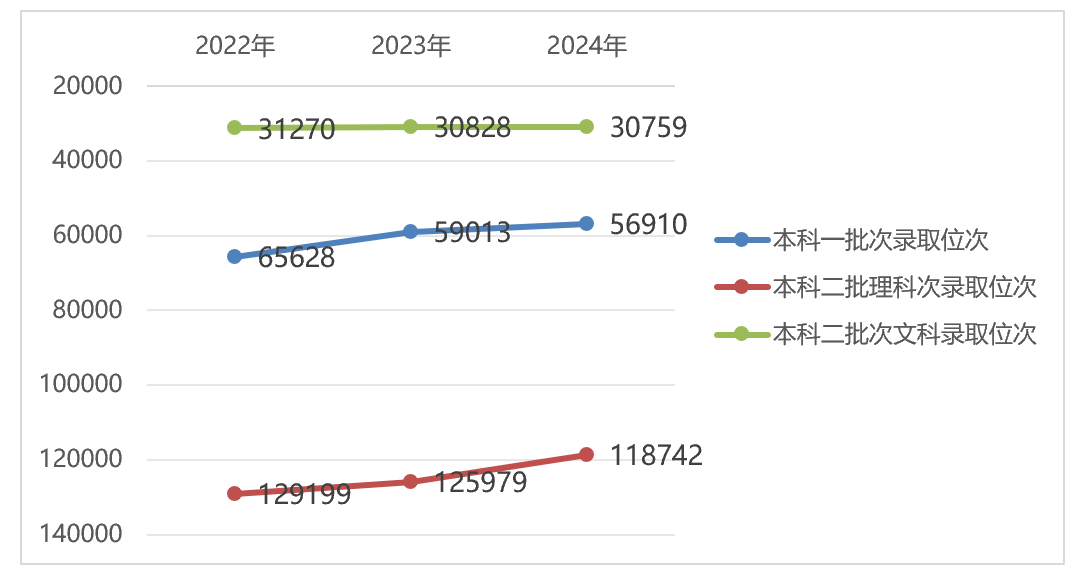 (四)提质升位,提升生源质量。近年来,学校生源质量逐年提升,录取分数及位次每年提高。本科一批调档线位次提升显著,本科二批文史和理工位次也大幅提升,达到历史新高。这不仅进一步缩短了与成都及周边高校的差距,还拉开了与后面紧跟高校的距离。通过不断提升生源质量,为毕业生的高质量就业奠定了坚实基础。