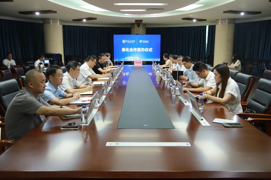 9月8日,我校与中国电信股份有限公司攀枝花分公司在弘毅楼300室举行深化合作协议签约仪式暨无纸化办公系统交付仪式。中国电信攀枝花分公司党委书记、总经理张全民(主持工作),攀枝花电信公司副总经理王垦,学校党委副书记、校长李兴贵,副校长王兵出席签约仪式。