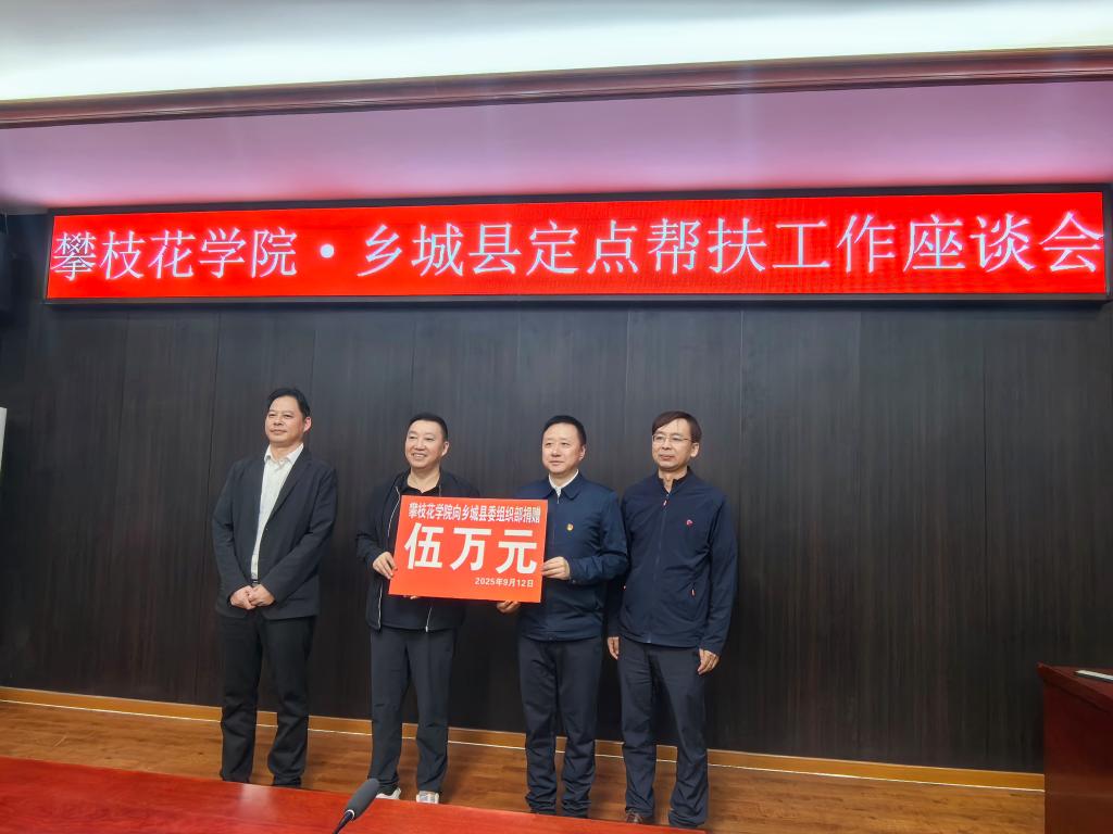会后,胥刚代表学校向乡城县委组织部捐赠5万元,并与相关负责人进行了详细交流。