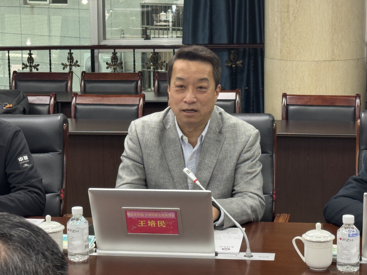 王兵代表学校对王培民一行的到来表示热烈欢迎,并简要介绍了我校办学历史、发展现状及办学特色。他指出,学校始终坚持以服务国家战略和区域经济社会发展为导向,深度融入地方发展,形成了鲜明的应用型办学优势。希望双方以此次交流为契机,建立常态化沟通机制,推动合作事项清单化管理,确保落地见效。