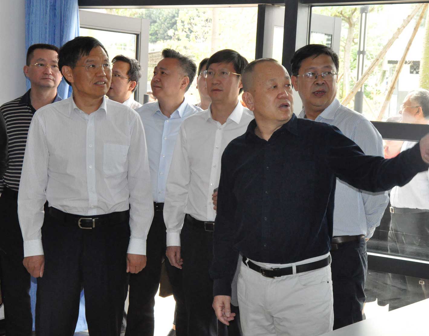 市委书记李建勤(左二)在校党委书记肖立军(右二)陪同下调研康养学院