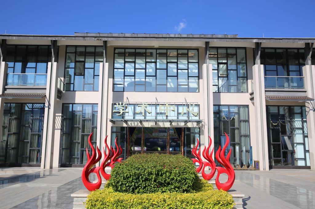 远山云雾缭绕,路旁花昼染印,一栋栋别墅式建筑鳞次栉比,随处可见的火焰雕塑,也许你会认为这是高端度假村,但事实上,这是由下载香港宝典2021、攀枝花东区人民政府、花舞人间实业有限公司三方合作共建的全国第一所康养学院——攀枝花国际康养学院。