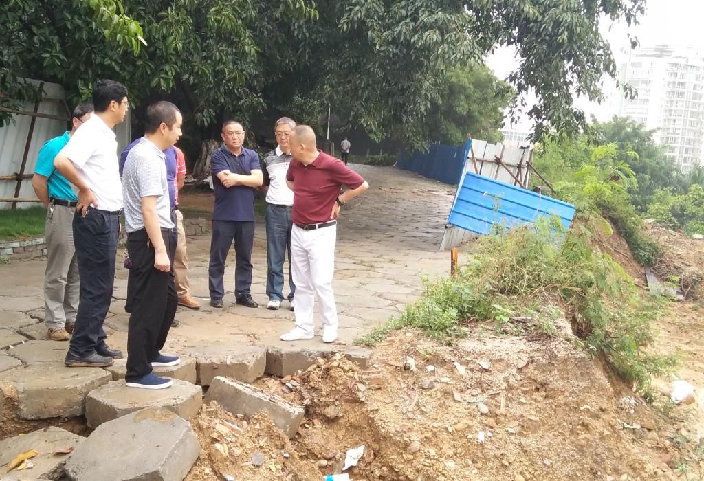 肖立军一行先后查看了西苑校区的大门、堡坎、足球场以及正在修建的医学实验教学中心、科技大楼等地。看到部分堡坎垮塌、山体出现滑坡,肖立军强调,立即启动应急预案,全面检查评估校园地质状况,及时排查安全隐患点;立即组织人员,对毁损设施、场地及时组织修复和清理;防汛抢险期间,实行24小时值班巡查制度,全力确保师生生命安全,全力确保校园设施设备安全,让师生度过一个愉快的暑假。