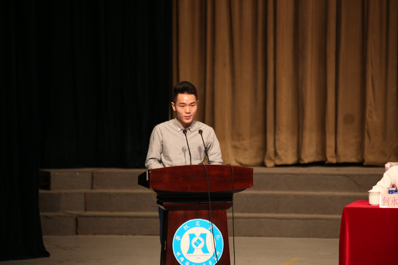 机械学院2015级工业设计学生唐浩代表全体学生感谢老师们的辛勤付出,表达了对学校全体教师的崇高敬意和衷心祝福。