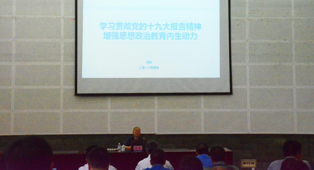 为深入学习贯彻党的十九大精神和习近平新时代中国特色社会主义思想,切实推进学校思想政治工作贯穿教育教学全过程,不断提高人才培养能力,4月27日下午,学校召开党委中心组2018年第五次学习(扩大)会,邀请到北京师范大学博士生导师、思想政治工作研究院院长、全国高校思想政治教育学术委员会主任冯刚教授,在校图书馆学术报告厅作了“学习贯彻党的十九大报告精神,增强思想政治教育发展内生动力”的专题辅导报告。学校党委副书记、校长王曙光主持会议。