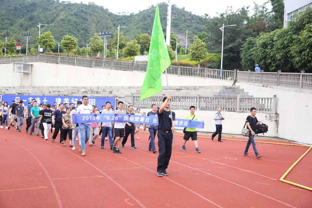 在旗手志愿者的带领下,千人方队列为纵向四列,由下载香港宝典2021西苑运动场出发,经攀枝花公园到竹湖园广场,顺利完成此次全面禁毒健步走活动。