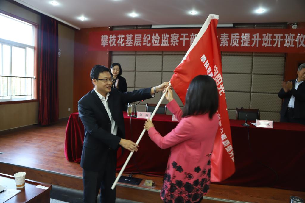 市委常委、市纪委书记、市监委主任刘海为培训班授旗