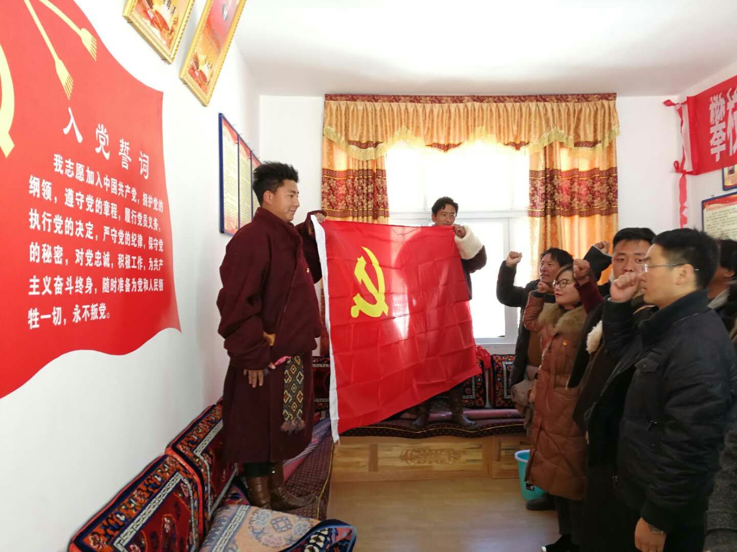 | 彭徐、胥刚一行与热郎宫村全体党员重温了入党誓词 |