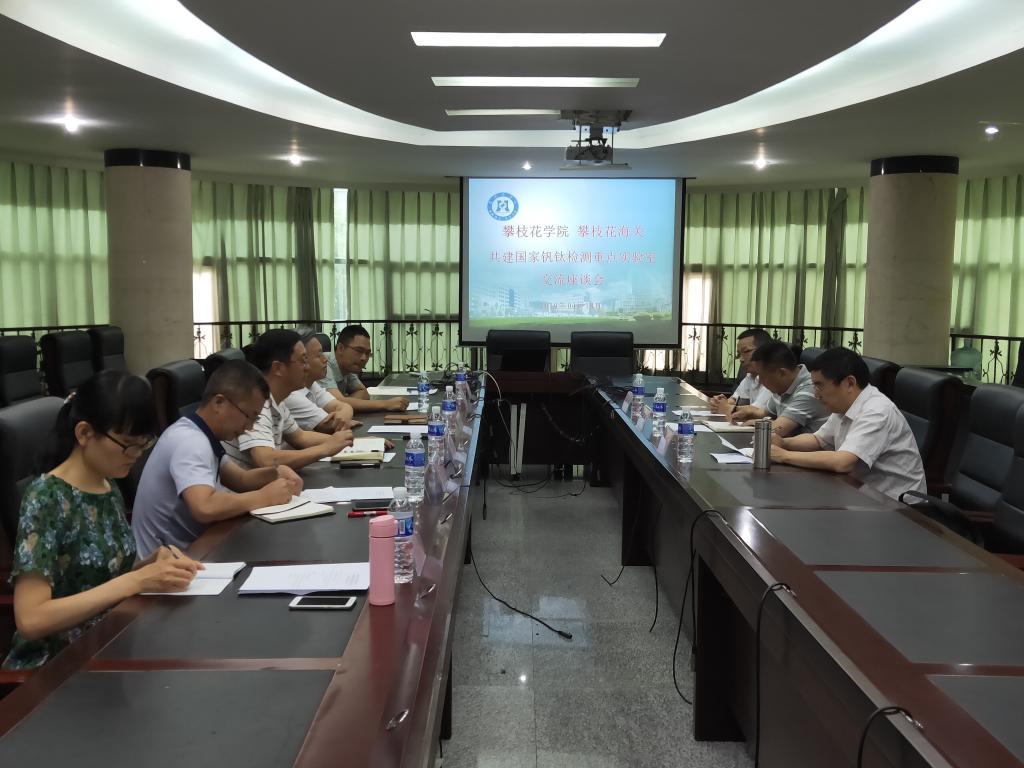 4月18日下午,我校与攀枝花海关在办公楼四楼会议室举行了国家钒钛检测重点实验室建设工作座谈会。校党委副书记、校长王曙光,副校长石维富,攀枝花海关关长潘斌、副关长李实,国家钒钛重点实验室主任任小青,钒钛学院院长邹敏、副院长田从学,以及钒钛学院部分教师代表参会。