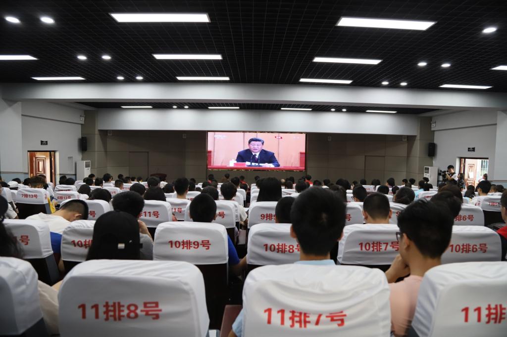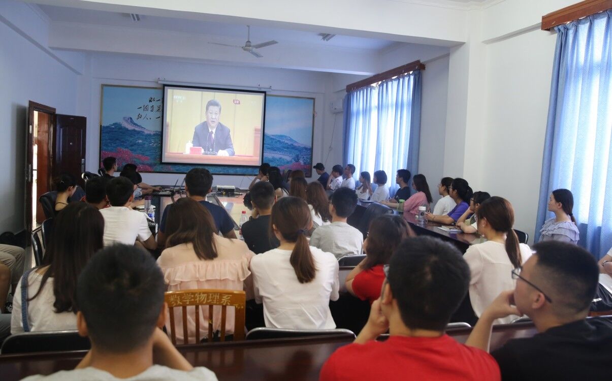 4月30日上午10时30分,纪念五四运动100周年大会在人民大会堂隆重举行。中共中央总书记、国家主席、中央军委主席习近平出席大会并发表重要讲话。校领导、各单位相关负责人及150余名青年代表在CJ1-2集中收看了大会直播,各部门、各学院组织师生员工,通过电视、网络、两微一端等途径,收看了大会直播,认真聆听了习近平总书记在纪念五四运动100周年大会上的重要讲话。