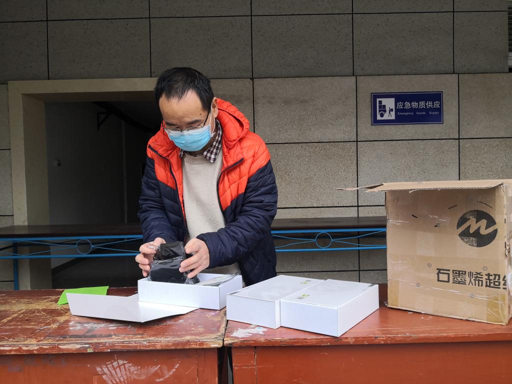 在物资保障上,资产管理处克服困难,通过电话、网络及上门走访等方式,一方面联系学校医疗耗材供应商落实防疫物资,另一方面积极与具有一类医疗器械资质的供应商联系落实防疫物资。同时,与校友会和相关企事业单位加强联系,各方筹措,积极争取口罩、消毒液、体温计、防护服等紧缺防疫物资并妥善解决疫情防控物资分类存放场地问题。截止2月26日,已筹集口罩4960个,消毒酒精 359瓶(50ml/瓶、500ml/瓶、1000ml/瓶、1500ml/瓶、2500ml/瓶等规格),消毒酒精2桶(2公斤/桶),消毒碘伏100瓶(100ml/瓶),洗手液 157瓶,医用棉签400包(40支/包),消毒片95瓶(100片/瓶),消毒片250袋(1公斤/袋),医用一次性手套1380双,84消毒液266瓶(500ml/瓶、2000ml/瓶、1000 ml/瓶),肥皂3072条(190克/块)。