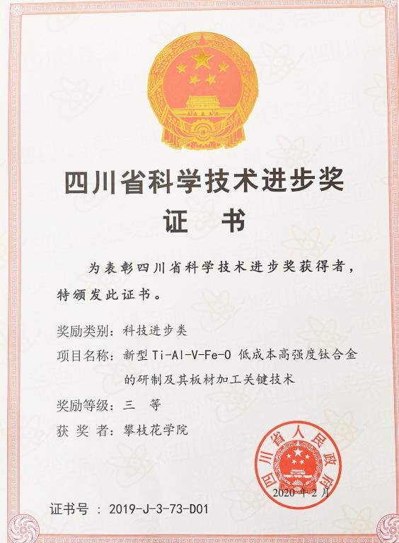 4月21日上午,四川省科学技术奖励大会公布了2019年度四川省科技进步奖获奖名单。我校教师黄平作为第一完成人的项目《特种工业乳化炸药关键工艺技术的开发与应用》和我校作为第一完成单位的项目《新型Ti-Al-V-Fe-O低成本高强度钛合金的研制及其板材加工关键技术》获得科技进步类三等奖。