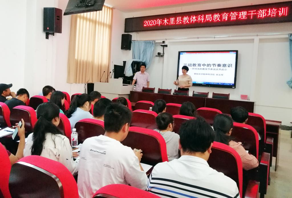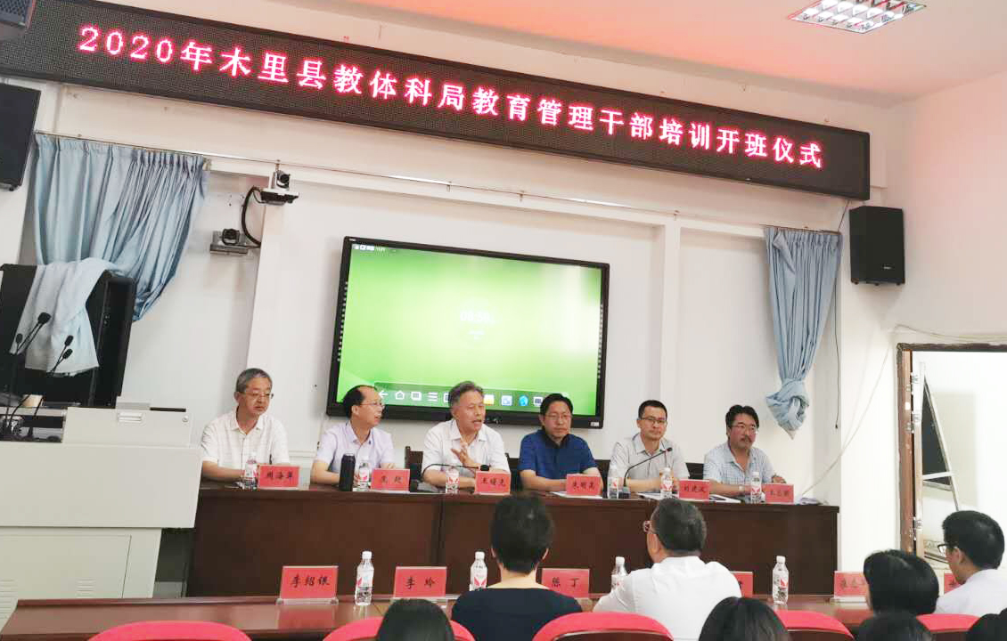 20日上午,王曙光一行和县委常委、副县长朱明高、县教体科局、教师培训中心负责人参加了在木里县教师培训与教研中心举行的“2020年木里县教体科局教育管理干部培训开班仪式”。王曙光发表讲话,他首先对长期奋斗在木里县基础教育基层一线的教师和教育工作者表示敬意,勉励参训教师努力学习,不断提升教育教学水平,为木里基础教育事业做出更大贡献;他要求各位培训专家,认真讲授、认真传业、认真指导,为有效提升木里县教师队伍业务素质和教育教学水平发挥积极作用。朱明高介绍了木里县教育系统的情况,希望参训教师把握好机会,认真学习领会教学内容,切实解决好教学中存在的难题,全面提升木里县教育水平。