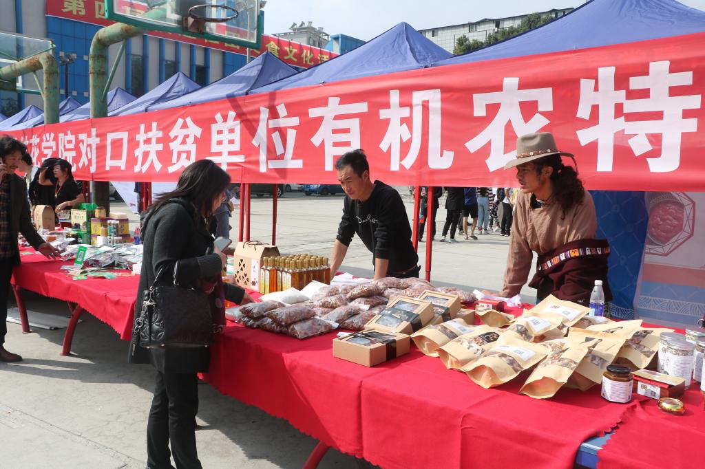 我校对口扶贫地区凉山州木里县、米易仙山村、乡城县参展。学校领导高度重视,党委书记肖立军、校长王曙光等校领导亲临现场观摩指导展销活动,并对活动开展情况给予高度评价。此次展出的特色农产品包括藏香猪、野鸡蛋、虫草、藏毯、野生蜂蜜、野生菌等优质天然农产品,吸引了广大师生员工及周边市民前往选购,创业学院还积极协调学生创业团队开展线上、线下结合的销售模式。