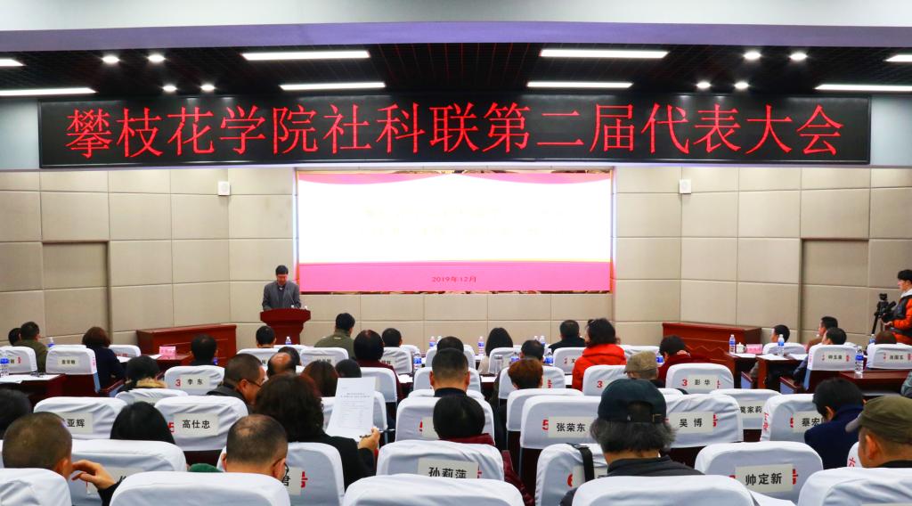 王汉军致辞,希望新一届学校社科联领导班子树立强烈的责任感,勇担重任,充分发挥高校人才聚集的优势,积极支持地方经济社会发展,为建设“英雄攀枝花、阳光康养地”做出积极贡献。
