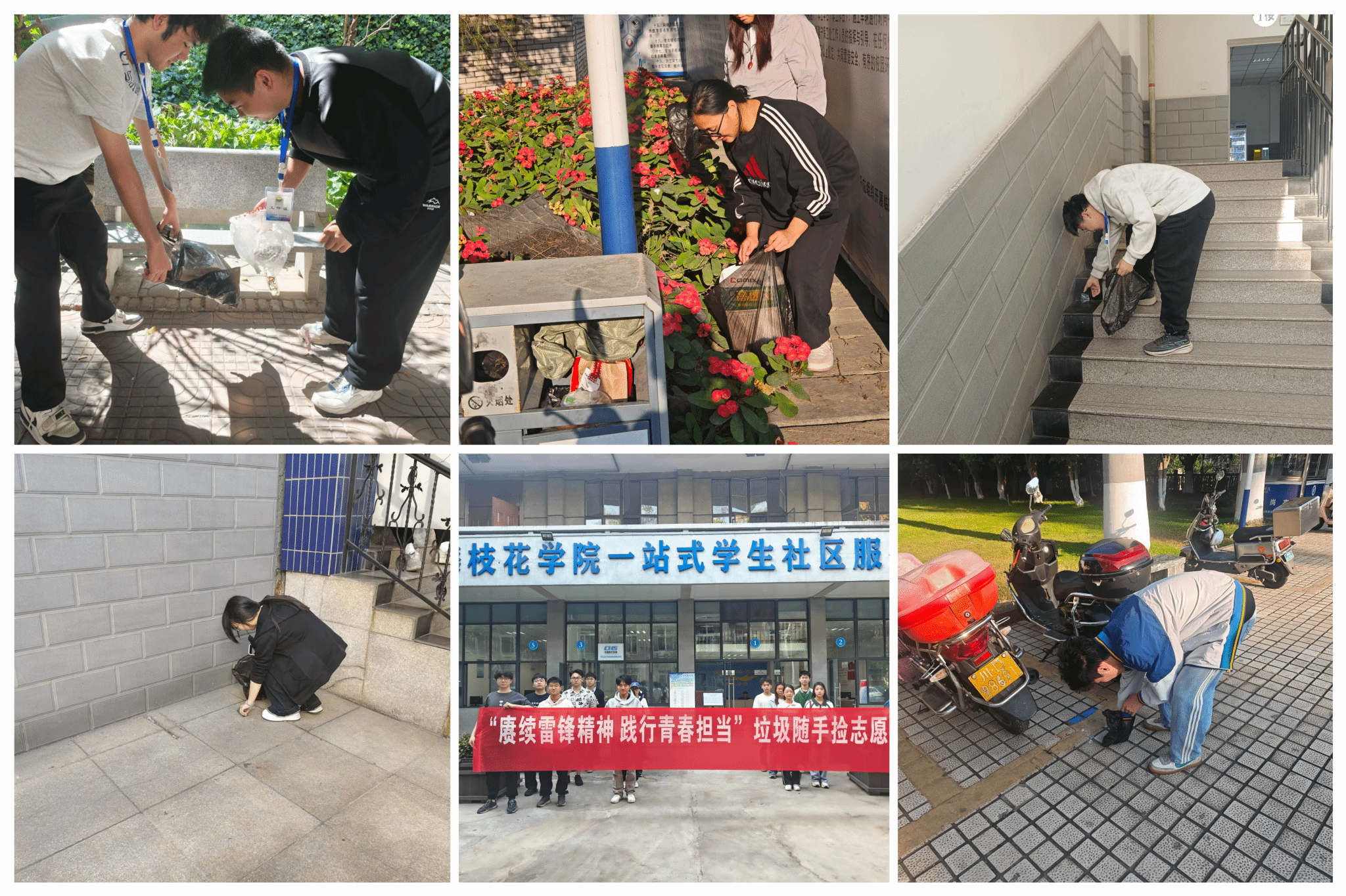 为深入践行“奉献、友爱、互助、进步”的志愿精神,响应学雷锋志愿服务号召,推动学生主动参与学生社区自治,将雷锋精神融入校园文明建设实践, 3月20日,学工部组织学生志愿者,在公园校区、东华山校区同步开展 “赓续雷锋精神 践行青春担当”垃圾随手捡志愿活动,近千名学生踊跃参与,以实际行动守护校园环境。