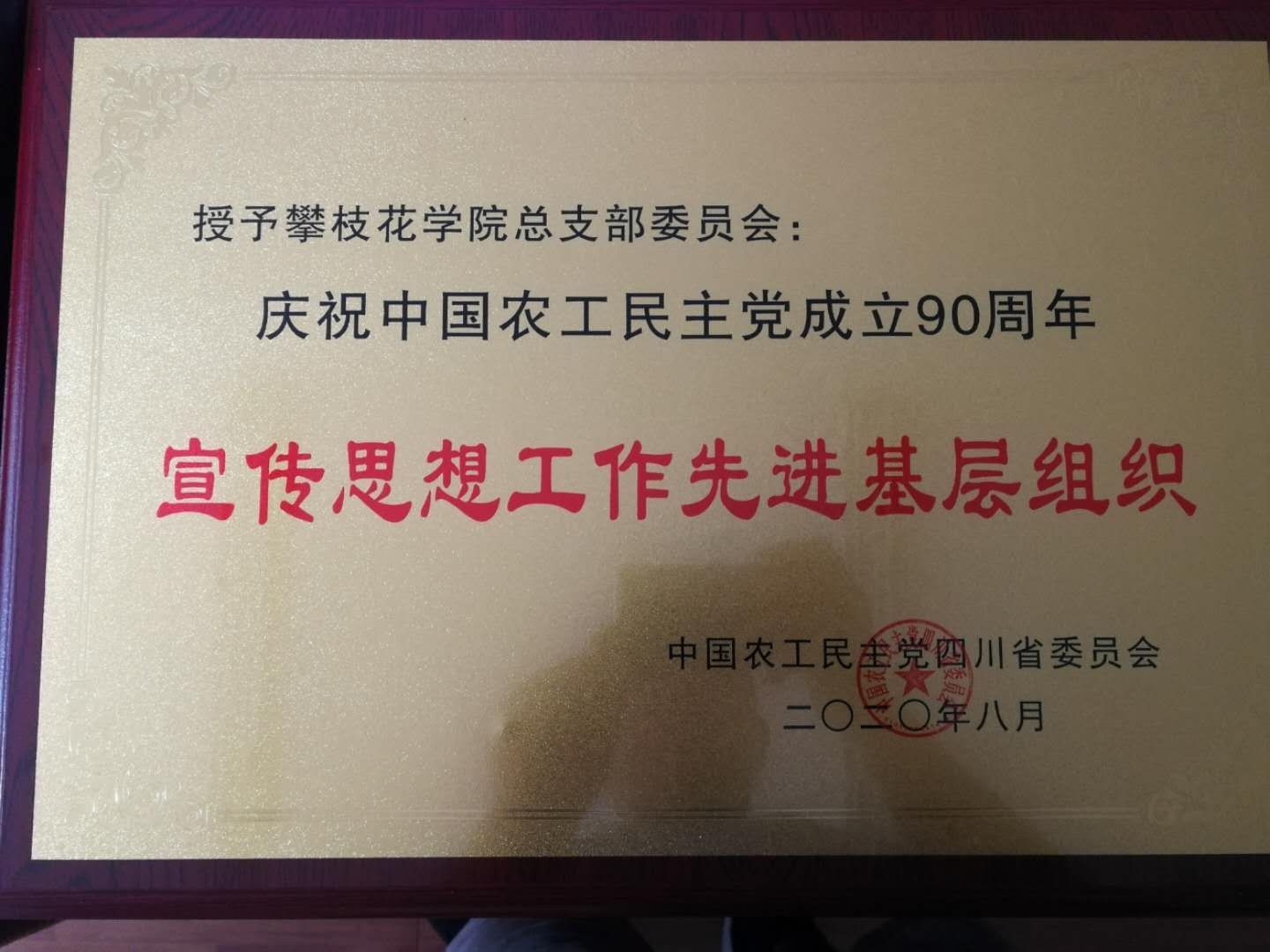 值此中国农工民主党成立90周年之际,中国农工民主党四川省委员会隆重表彰一批全省优秀农工党组织和优秀党员,由于宣传思想等工作表现突出,农工党下载香港宝典2021总支荣获全省宣传思想工作先进基层组织荣誉称号,总支副主委李钦同志荣获庆祝农工党成立90周年先进个人称号。
