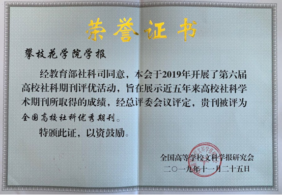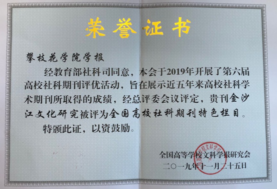 近日,“双一流”建设背景下高校学术期刊的责任与使命学术研讨会暨全国高校文科学报研究会第八届理事会第五次会议在广东省肇庆学院召开。会议对第六届全国高校社科期刊评优活动中获奖的单位和个人进行了表彰,我校学报获“全国高校社科优秀期刊”,学报的“金沙江文化研究”栏目获“全国高校社科期刊特色栏目”。