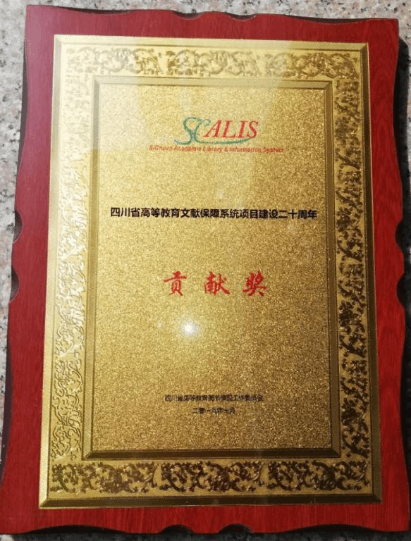 10月11日,在四川省高校CALIS、CASHL、CADAL平台资源服务与利用研讨会上,我校图书馆作为四川省Calis联机编目43个成员馆之一,荣获四川省图工委颁发的“四川省高等教育文献保障系统项目建设二十周年贡献奖”C级。据悉,此次获奖的B级成员馆1个, C级成员馆5个,D级成员馆37个。