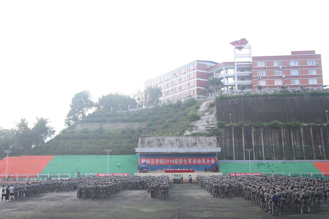 9月12日上午,我校2019级新生军训动员大会在学校足球场拉开序幕。副校长、军训团政委石维富、武警攀枝花支队参谋长陈志谋中校,武警攀枝花支队副参谋长、本次军训团团长刘麟少校出席大会,学校宣传部、学工部(武装部)、教务处、保卫处、后管处、校团委、体育部等各单位相关负责人、二级学院学生科科长和新生辅导员老师以及后勤保障服务人员、军训教官和2019级全体新生参加了此次大会。本次大会由学生处处长周传兴主持。