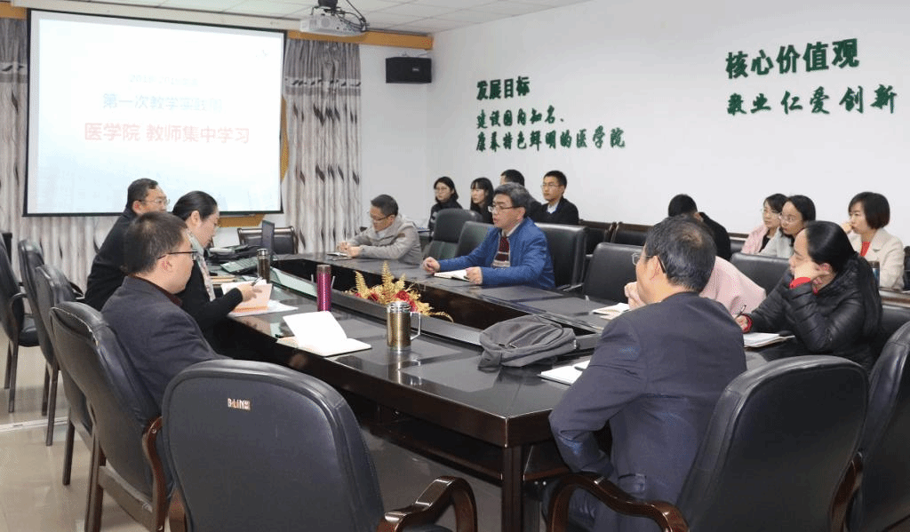 1月3日上午,医学院院长赵牧在学院会议室为全体教职工作题为“政策导向与教研教改选题思路”的主题报告,拉开了医学院教职工的“第一个教学实践周集中学习”序幕。